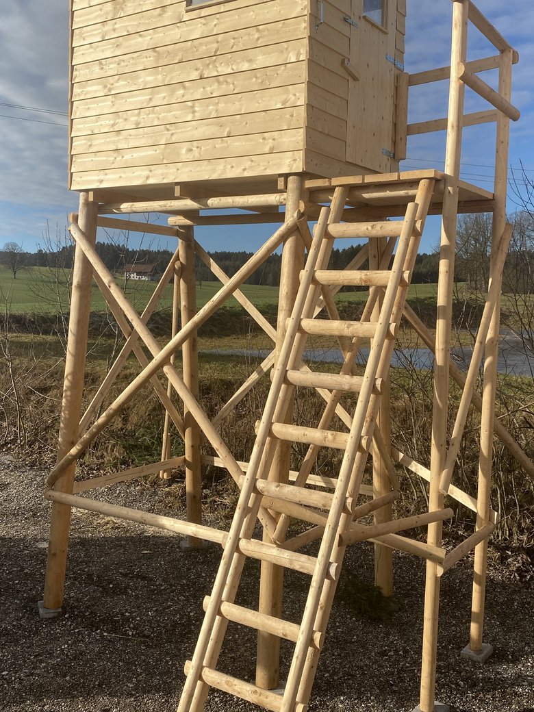 - Modulbauweise: Die Kanzel besteht aus 6 Einzelteilen und kann problemlos von 2 Personen aufgebaut werden. Wir übernehmen aber auch gerne die Lieferung und den Aufbau.