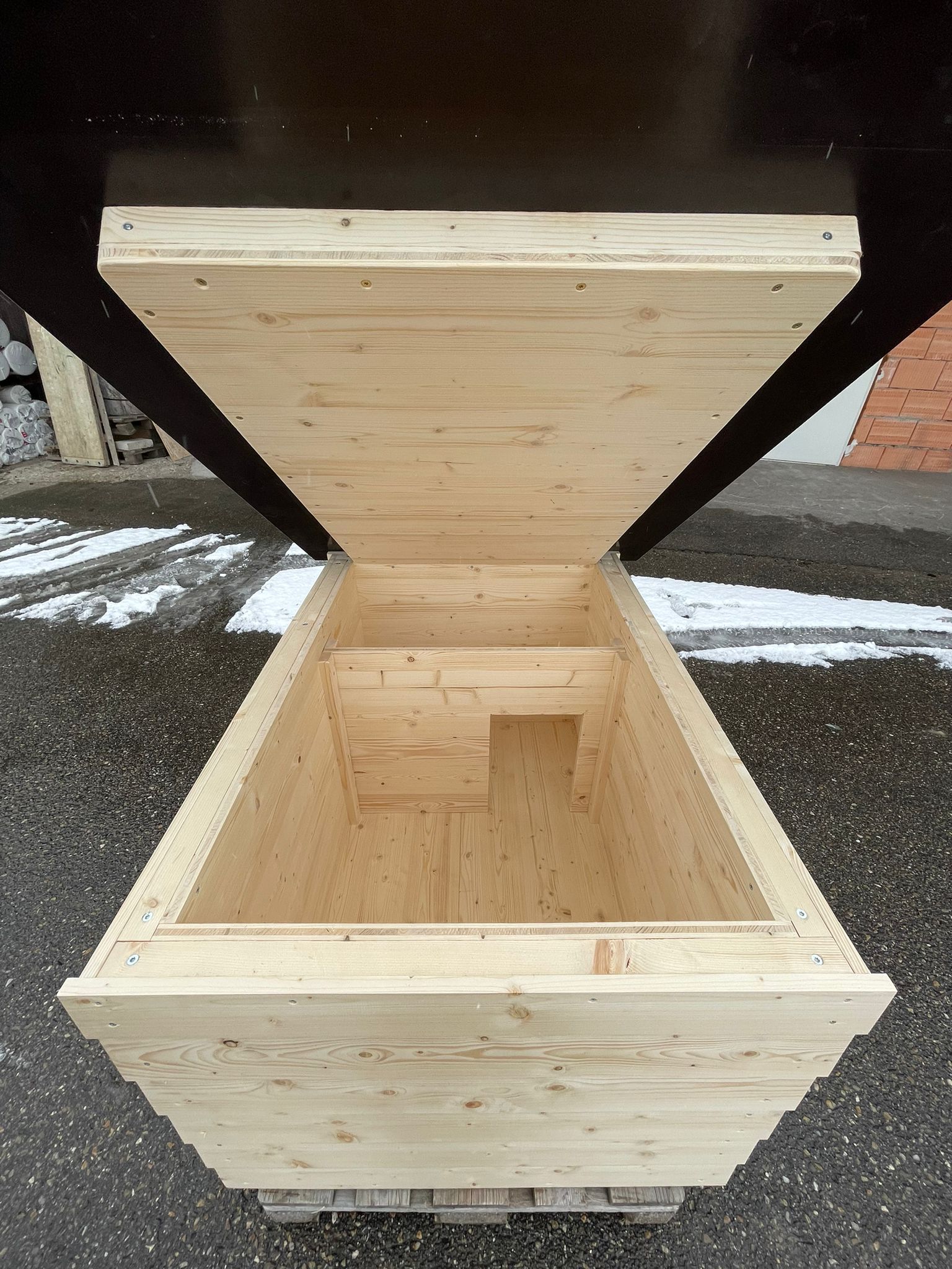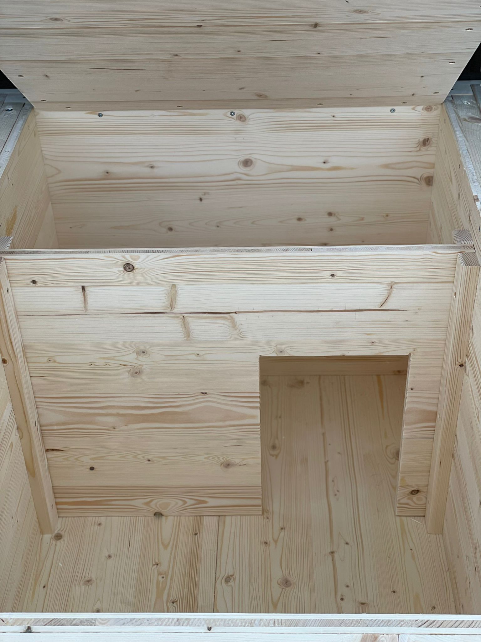 Um auch für unsere treuen Begleiter einen schönen Platz zu haben, bauen wir im ähnlichen Stil wie die Kanzeln eine Hundehütte. Diese ist gedämmt und robust gebaut, dass diese jedem Wetter trotzt. Jede Hütte kann an die Hundegröße angepasst werden.
